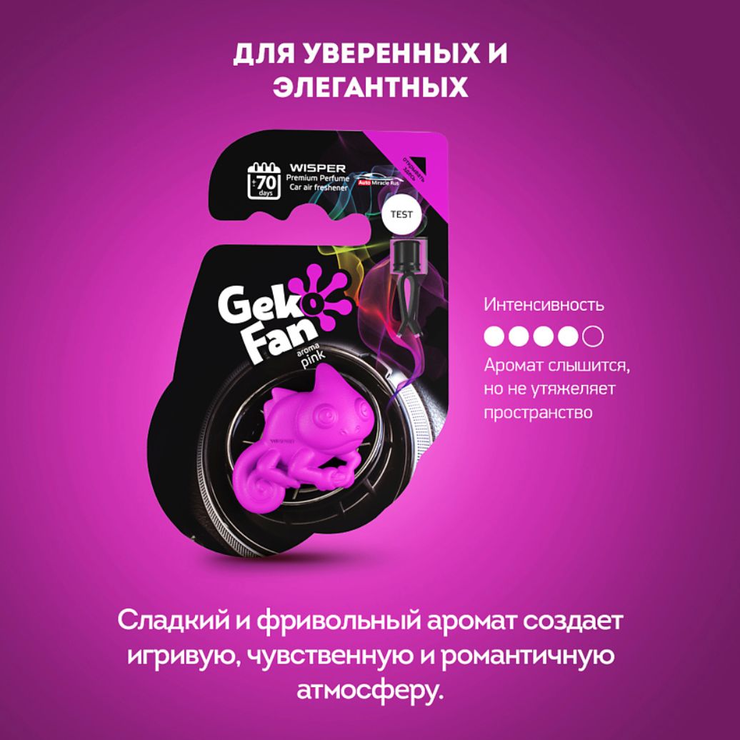 Wisper GekoFan – новое слово в автомобильной парфюмерии. Это ароматизатор – антистресс, который позволит вам не только наслаждаться приятными ароматами в дороге, но и все время быть в тонусе, избегая утомления и неприятных мыслей.