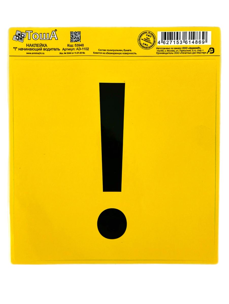 Наклейка " ! "начинающий водитель "ТоША" 15*15 , уп. 200 шт